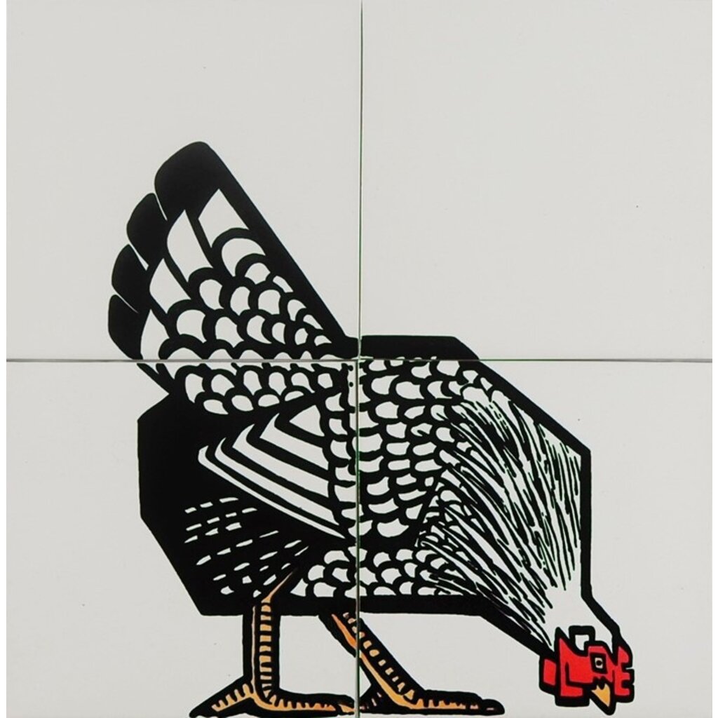 Art deco tegeltableau kip - Deze gedecoreerde Art deco tegels met boerderijdieren zijn gemaakt door middel van zeefdruktechniek. Prachtige Art deco tegels die toepasbaar zijn in de hal, keuken en badkamer.