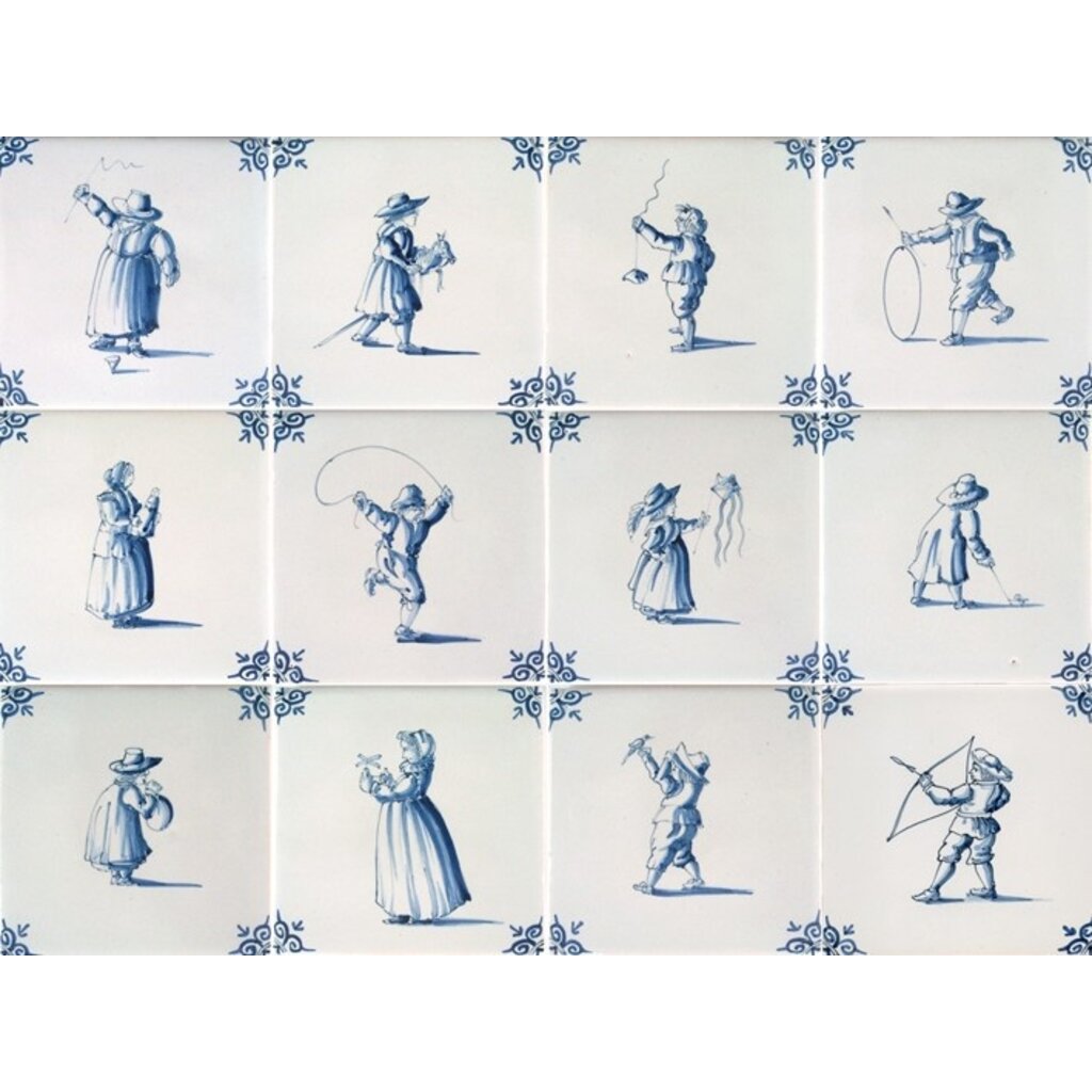 Traditioneel gedecoreerde tegels met kinderspelen groot (ca.1650). Ambachtelijk gemaakt in Friesland. Bestel direct online!
